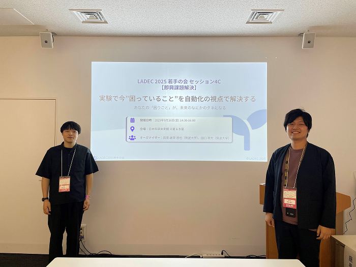 田口 将大さん(ヒューマニクス5年)と田原(新井) 悠也さん(ヒューマニクス3年)がLADEC2025にて学生自主企画のシンポジウムを開催しました。